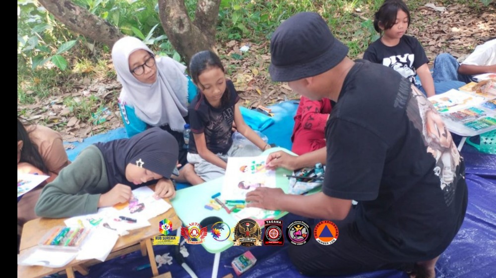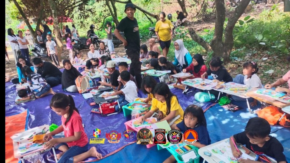 Di lokasi yang sama, suasana makin meriah dengan hadirnya kelas rupa terbuka “Nggambar Ning Kampung Jelo #1”. Sebanyak 50 anak usia 4–10 tahun ikut belajar menggambar bersama kakak-kakak dari Komunitas Perupa Jember (KPJ). Acara ini gratis, terbuka, dan bukan lomba, melainkan ruang ekspresi kreatif bagi anak-anak kampung Wetan Kantor. Dukungan datang dari banyak pihak: Amore Fotocopy Jl. Mastrip Jember, EREKA PRINT JEMBER untuk pencetakan sertifikat, MEDIA 88 KREASINDO Event Creation untuk sentuhan kreatif acara, serta seluruh pengurus lingkungan RW 25 dan PKK.
