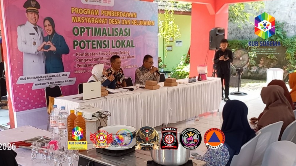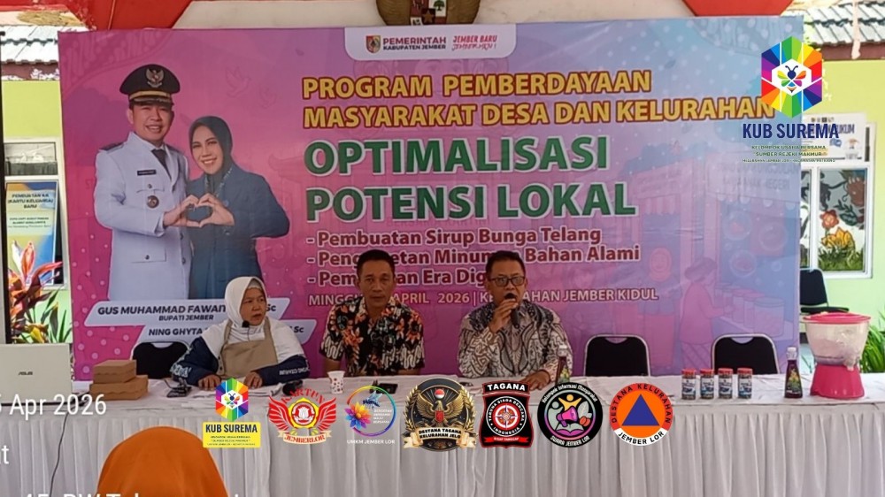 SWARA JELO KIM ID JEMBER LOR – Minggu, 26 April 2026, Kelurahan Jember Kidul menjadi tuan rumah kegiatan Program Pemberdayaan Masyarakat Desa dan Kelurahan yang digagas Pemerintah Kabupaten Jember. Agenda ini mengusung tema Optimalisasi Potensi Lokal dengan fokus pada pengembangan produk alami dan strategi pemasaran modern.